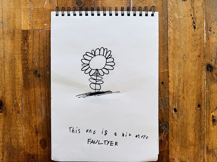 once i saw a photo of the actual finished piece just a couple of weeks ago, i just…quietly sobbed for about 2-3 minutes at my desk. while i didn’t anticipate having such a strong reaction to not only seeing it in its finished state but to also see Austin’s own artistic creation rendered in neon light underneath text sampled after my own handwriting, i couldn’t even help nor contain myself. the tears began to flow hard and fast out of my eyes instantaneously. i just sat there soaking in the visual, a bit incredulous that it was real. it also felt whole to me; looking at it elicited a sense of celebration, love, unity, and a groundedness i tend to feel in both in my core and the bottoms of my feet when i am thinking of my family and our bonds with each other. i attribute that sense to the inclusion of Austin’s flower. it’s simplistic, sure, but the impact is layered and fills me with a range of emotions and memories.