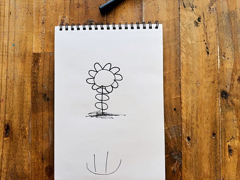 it took some time to get the painting itself completed, as well as to settle on the design. early on, i thought just having the words was sufficient, but as time went on, i felt the pull to add something more, although i initially wasn’t sure what would make sense to include. then one day, while Austin was taking a break between his school lessons, he pulled out his sketchpad and markers and joined me at the table where i was thinking through the placement of the text. i had my handwritten samples of each word spread out on the table in front of me, and as i moved them around in various configurations, Austin asked me to tell him about the piece and why i’d chosen those words. i shared the poem and a bit about Paul Robeson with him, even watching a few clips of Robeson singing. i asked Austin for his thoughts on how the words should be placed and then had a thought: what if he drew something simple in response to the words and we added that as a finishing touch? we talked it out, and in the end, he settled on a flower growing out of the dirt, because he said both the words and the painting reminded him of our garden beds last summer. this made me incredibly happy, as did his drawings. he did a few iterations and then chose what he felt was the best and likely easiest one for LBN to make into neon. i sent scans of his drawing as well as some notes about it and my desired text placement to LBN; when they sent me a series of final renderings to choose from and approve, i think my heart nearly exploded with delight and a sense of pride.